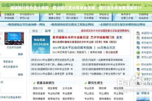 摘要:本篇自媒体文章将为您详尽解读银行流水账单,揭秘银行柜台流水的秘密。文章将探讨如何正确理解和分析银行流水账单,以及银行柜台办理流水账单时是否需要支付费用等问题。通过阅读本文,您将更好地了解银行流水账单的重要性,以及如何有效利用这些信息进行财务管理。