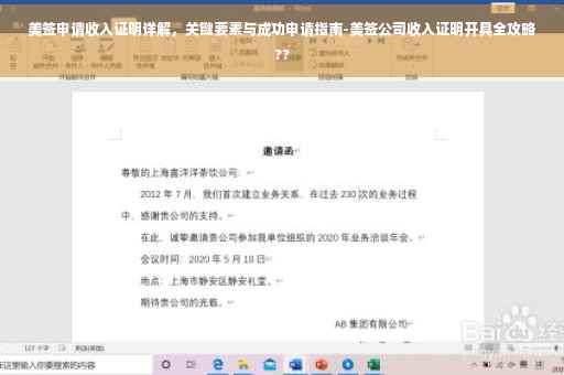 在申请美国签证的过程中,收入证明是一个重要的环节,作为自媒体作者,我深知申请者对于签证流程的关注和疑惑,本文将详细介绍美签申请中的收入证明相关内容,帮助申请者了解如何准备并提交一份有效的收入证明,以提高签证申请的成功率。