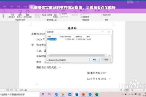摘要:本机器维修完成证明书旨在确认某机器已经顺利完成维修工作。证书内容包括机器的基本信息、维修内容、维修结果以及维修人员的签字和日期等。撰写时应注意清晰明了、言简意赅,确保证明书的真实性和有效性。证书格式应规范,包括证书名称、编号、机器信息、维修详情、结论等部分。通过此证明书,可以确保机器已经恢复正常运行,并证明维修工作已经完成。