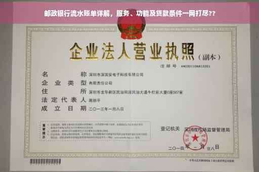 摘要:邮政银行提供详细的流水服务,包括多种功能,如账户查询、交易明细等。客户可以通过网上银行、手机银行等渠道获取流水账单。邮政银行的流水账单可以作为贷款申请的参考依据之一,客户可以根据自身情况申请贷款。该银行流水服务的便捷性和透明度,为客户提供更加优质的金融服务体验。