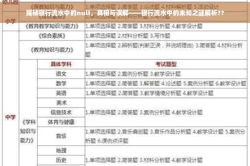 在我们的日常生活中,银行流水已经成为了一个不可或缺的部分,无论是申请贷款、办理信用卡,还是进行财务审计,银行流水都是证明我们财务状况的重要文件,有时,我们可能会在银行流水中看到“null”这样的字眼,这会引起很多人的困惑和疑虑,银行流水中出现的“null”究竟代表什么含义呢?背后又隐藏着哪些误解呢?本文将带您深入了解。