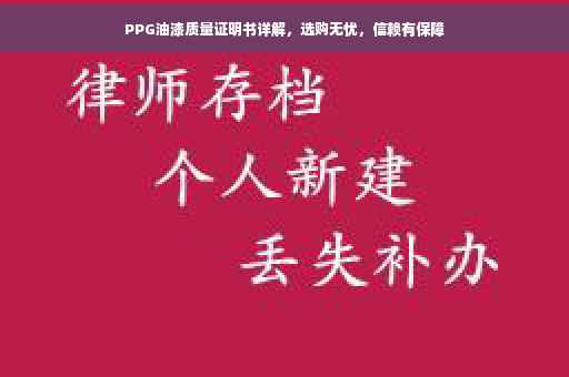 通过本文的介绍,相信消费者对PPG油漆质量证明书有了更深入的了解,在选购PPG油漆时,请务必查验质量证明书,确保购买到的是正品,关注产品质量证明书的内容,了解产品的性能、安全性和合规性,为自己的选购决策提供依据,放心选择PPG油漆,让您的生活更加美好。