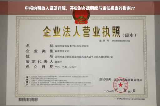 随着互联网的普及和数字化时代的到来,财务透明和责任担当成为了现代社会中不可或缺的话题,越来越多的人开始关注自己的财务状况,尤其是收入情况,申报纳税收入证明作为一种展示个人财务透明度的方式,不仅体现了个人诚信,更有助于建立良好的信誉形象,本文将详细介绍申报纳税收入证明的意义、作用,以及如何正确申报纳税收入,并结合实际案例进行说明。