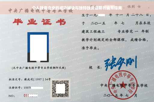 摘要:个人独资企业的成功之路需要独特的独资证明书来支持。该证明书应包含企业名称、注册时间、注册资本、经营范围等重要信息。撰写个人独资证明书时,需确保内容真实、准确、完整,格式规范,体现企业的独立性和法律责任。掌握正确的撰写方法,有助于个人独资企业在市场竞争中脱颖而出,实现可持续发展。