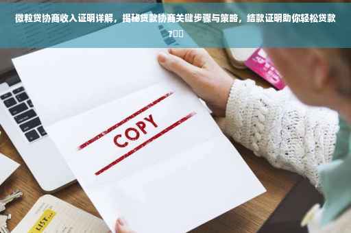 摘要:本文将介绍微粒贷协商收入证明的过程,包括贷款协商中的关键步骤和有效策略。通过揭秘微粒贷结款证明的重要性,帮助读者更好地了解如何成功协商贷款并顺利获得收入证明。本文旨在提供实用的指导和建议,帮助需要贷款的人更好地应对微粒贷协商过程中的挑战。