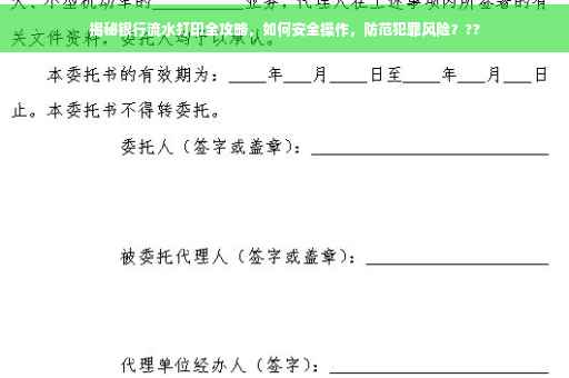 摘要:,,本文提醒公众警惕银行流水打印过程中的潜在犯罪风险,并揭示如何正确打印银行流水明细。作为防范犯罪的重要一环,个人和企业应了解正确打印银行流水的方法,以保护自身财产安全,避免陷入相关犯罪问题。