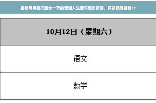 在现今社会,随着经济的发展和生活水平的提高,拥有稳定的银行流水收入逐渐成为人们普遍追求的生活状态,这种稳定收入不仅意味着生活品质的保障,更代表着对未来生活的信心和期望,本文将通过一名普通人的生活经历,揭示每月银行流水一万的生活真相,并深入探讨这一收入背后的理财策略与智慧。
