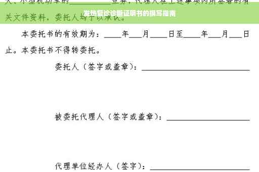 随着气温的逐渐下降,发热病例有所增多,作为自媒体作者,我深感责任重大,为大家带来关于发热复诊诊断证明书的相关知识和信息,本文将详细介绍发热复诊的原因、症状、诊断过程以及治疗建议,旨在帮助大家更好地了解和应对这一健康问题。