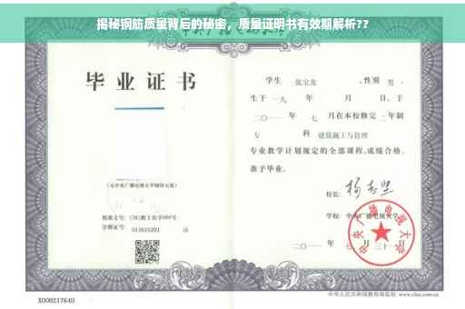 摘要:本文将探讨钢筋质量证明书的重要性及其有效期问题,揭示钢筋质量背后的秘密。通过了解质量证明书的详细内容,读者可以更好地了解钢筋的质量状况,确保建筑安全。文章将简要介绍质量证明书的生成过程及其有效期,帮助公众了解并关注钢筋质量的重要性。