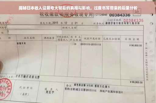 摘要:关于日本收入证明写多的问题,背后隐藏着真相与误解。若收入证明写多,可能会导致个人信誉受损,甚至涉及法律责任。真实情况是,应准确填写收入证明,避免夸大或虚构。需了解相关法律规定,以免因误解而产生不必要的麻烦。在填写收入证明时务必谨慎,确保真实性。