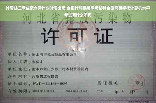 成绩查询: 计算机二级考试成绩查询时间一般为考试结束后45-60日,自2009年起计算机二级考试成绩查询时间一直为45日。 计算机二级统一成绩查询入口为教育部考试中心,部分省市如江苏、黑龙江等也可通过省市考试院或者人事考试中心进行查询。 证书: 全国计算机等级考试合格证书式样按国际通行证书式样设计,用中、英两种 文字书写,证书编号全国统一,证书上印有持有人身份证号码。该证书全国通用,是持有人计算机应用能力的证明