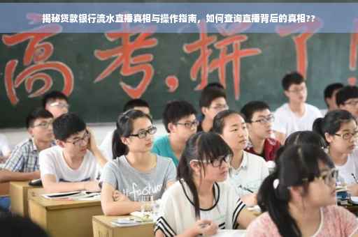 摘要:本文将揭示贷款银行流水直播背后的真相和操作指南。读者将了解如何查询贷款银行流水直播,包括注意事项和操作步骤。通过本文,读者可以更加清晰地了解贷款银行流水的真实情况,以便做出更明智的贷款决策。