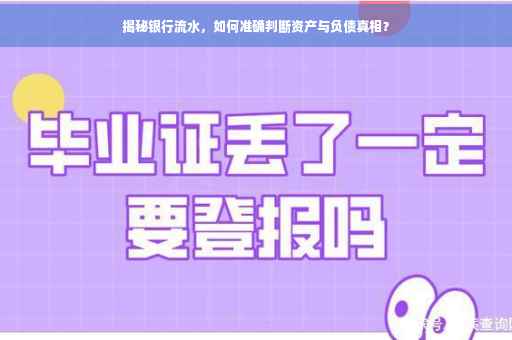 摘要:本文将揭示通过银行流水判断资产真相的方法。通过深入分析银行流水账单,可以了解个人或企业的资产与负债状况。本文将介绍如何利用银行流水账单识别资产与负债,并探讨其背后的逻辑和实际操作方法。帮助读者更好地管理自己的财务状况,实现资产增值。