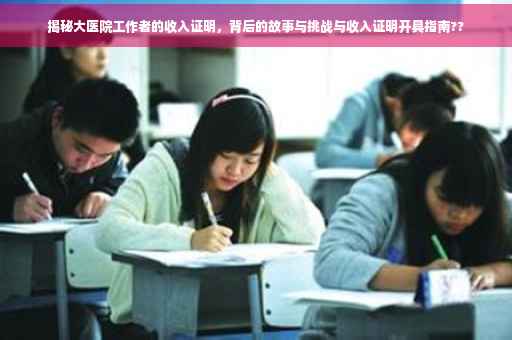 摘要:本文将探讨大医院工作者的收入证明背后的故事与挑战,包括如何开具收入证明。在这篇文章中,我们将揭示大医院工作者的真实收入情况,以及他们所面临的职业压力和经济挑战。也将介绍开具收入证明的具体流程和注意事项,帮助读者更好地了解这一话题。