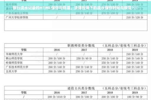 摘要:关于银行流水记录的HTML保存与管理,银行流水保存时间是受到法律规定的。客户可以通过银行提供的渠道获取流水记录,并以HTML格式进行保存。这些记录对于个人财务管理和审计至关重要,因此必须妥善管理。法律规定了银行流水记录的最低保存时间标准,确保客户可以长期访问和核实其交易记录。此举有助于维护金融透明度和个人权益。