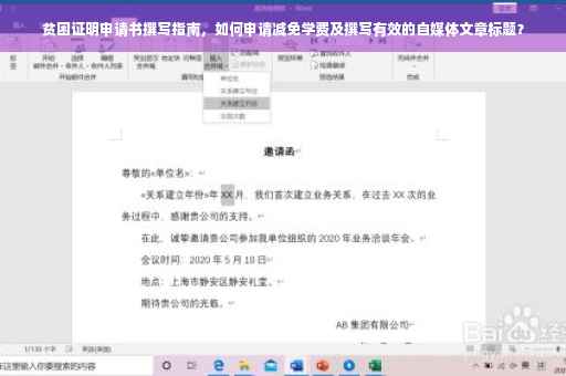 摘要:本文介绍了如何撰写贫困证明书申请减免学费的自媒体文章。文章指出,在撰写申请时需要注意突出个人贫困状况、家庭背景以及学习表现等方面的内容,同时要注意语言表达简洁明了,突出个人真实情况。文章还给出了一些具体的申请写作技巧和注意事项,以帮助申请者成功获得学费减免的机会。