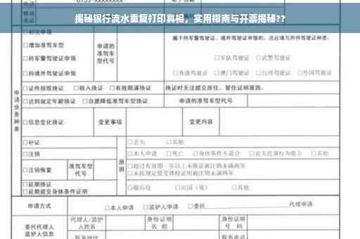 摘要:关于银行流水重复打印的问题,本文揭示了真相并提供了实用指南。在银行业务繁忙的情况下,有时会出现银行流水重复打印的情况,这可能给客户带来困扰。本文旨在帮助公众了解这一现象的原因,同时提供解决方案和预防措施,确保客户能够正确、高效地处理银行流水重复打印的问题。