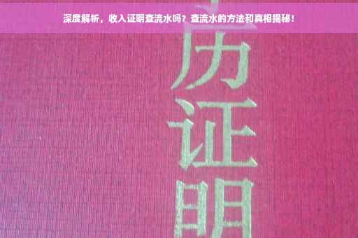 在当今社会,无论是求职、贷款还是办理信用卡,收入证明都是一项重要的证明材料,而在这个过程中,很多人会遇到一个问题:收入证明查流水吗?本文将围绕这一问题展开深度解析,带您了解背后的真相。