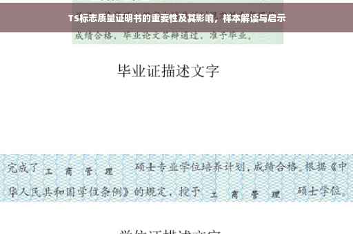 质量证明书TS标志在提升产品信誉、增强消费者信心、提高企业竞争力等方面发挥着重要作用,企业应重视质量证明书TS标志的获取和维护,以提高产品的质量和安全性,满足消费者的需求,政府和社会各界也应加强监督和引导,推动质量证明书TS标志制度的完善和发展,为行业的健康发展提供有力保障。