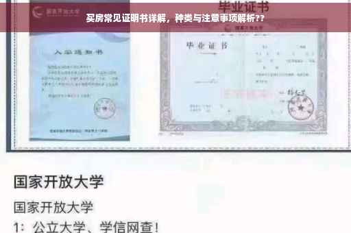 摘要:买房过程中,证明书是重要的一环,涉及多种类型。常见的证明书包括购房发票、房屋产权证、不动产登记证明等。这些证明书对购房者而言具有保障权益、确认产权等重要作用。购房者在购买房产时,应关注证明书的真实性和有效性,并了解相关事项,如办理流程、费用等。本文将对买房时常见的证明书及相关事项进行详细解析,帮助购房者顺利购房,保障自身权益。