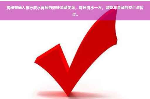 摘要:本文探讨了普通人与金融之间的微妙关系,特别是关于银行每日流水一万的情况。文章指出,银行流水一万多的交易是否会被监控是一个常见问题,涉及个人金融行为及可能的监管问题。文章旨在帮助读者更好地理解个人金融行为与金融监控的关系,同时提供一些关于如何合理管理个人财务的建议。