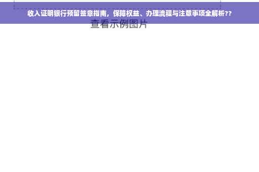 摘要:本文介绍了收入证明银行预留签章的重要性及其办理流程和注意事项。通过预留签章,可以保障个人权益,确保收入证明的真实性和有效性。本文将指导读者如何正确书写收入证明银行预留签章,并提醒注意事项,包括选择正规银行、提供真实信息、注意保密等。本文旨在帮助读者顺利完成收入证明银行预留签章的办理,确保个人财务安全。