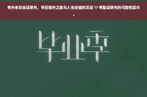 随着社会的不断发展和进步,学历提升已成为越来越多人追求个人成长和职业发展的重要途径,专升本作为其中的一种途径,为广大有志青年提供了从专科到本科的升学机会,本文将围绕专升本毕业证明书这一主题,带你走进一段关于学历提升与人生价值的旅程。