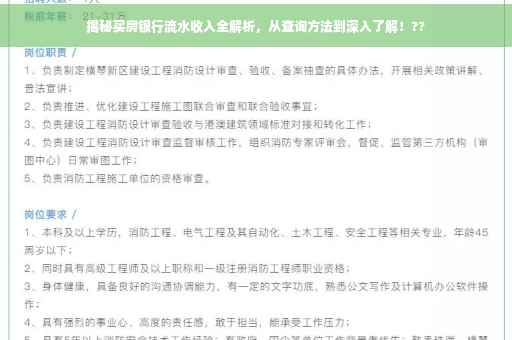 揭秘买房过程中的银行流水收入细节,全面解析银行流水收入的各项要素。文章详细指导读者如何查询银行流水记录,深入了解个人或家庭的收入状况,为购房决策提供参考依据。通过此文,读者可以了解银行流水收入在购房过程中的重要性,并学会如何有效查询和解读相关信息。