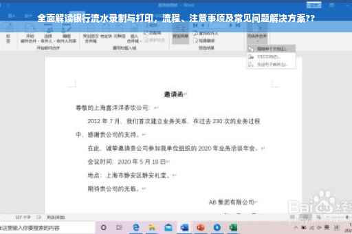 随着金融行业的快速发展,银行业务办理已成为人们日常生活中不可或缺的一部分,银行流水作为个人或企业经济活动的重要记录,其录制与打印需求日益受到关注,本文将详细介绍银行流水录制与打印的流程、注意事项以及常见问题的解决方案,帮助广大读者更好地了解并顺利办理相关业务。