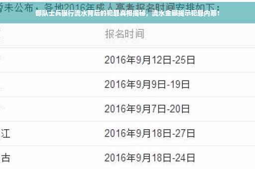 近年来,随着金融行业的快速发展,银行流水成为了人们日常生活中不可或缺的一部分,在这一背景下,一些部队士兵的银行流水却引起了人们的关注,他们为何会有大量的银行流水?这其中是否存在违法犯罪问题?本文将深入探讨这一问题,揭开部队士兵银行流水的犯罪面纱。