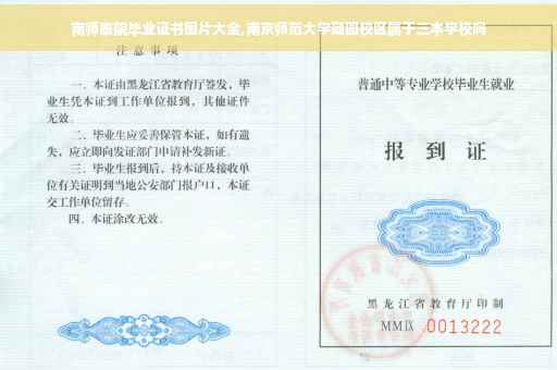 南京师范大学分3个校区:随园校区(主要是研究生专业,金陵女子学院等),紫金校区(工科专业,工科实践基地),仙林校区(师范类,艺术类,文学类,新闻类,体育类等专业及自考,中北学院等二级学院) 。南京师范大学所发放毕业证不以校区分类。除自考,中北学院,南京干部管理学院等外发放普通高等教育毕业证书及各种学位证书