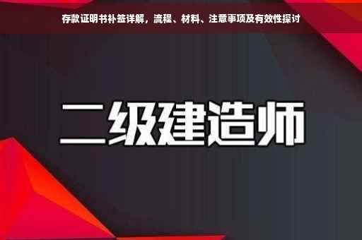 在现代社会,存款证明书已成为人们办理金融事务、签证等手续的重要证明文件之一,由于种种原因,有时我们可能需要补签存款证明书,本文将详细介绍存款证明书补签的流程、所需材料以及注意事项,以帮助读者顺利完成补签手续。
