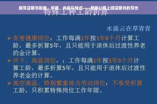 摘要:本指南介绍了证明书撰写的步骤、内容和格式。撰写证明书的步骤包括确定证明目的和内容、选择合适的格式和书写方式。内容应涵盖证明对象的基本信息、工作内容及职务等。格式上需注意标题、称呼、正文、签名和日期等要素。关于在公司上班的证明书撰写,应着重描述员工的入职时间、工作岗位、工作内容及表现等,确保信息真实准确。