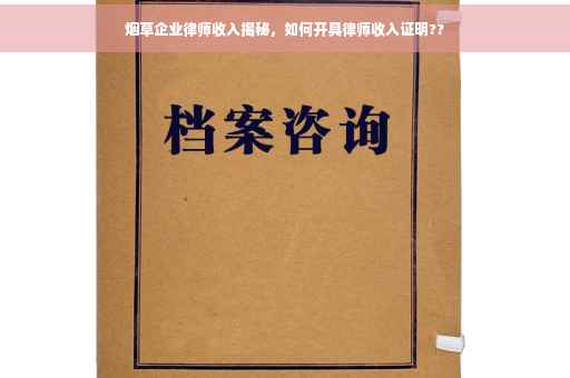 摘要:本文将揭示烟草企业律师的收入证明问题,介绍如何开具烟草企业律师的收入证明。文章将涵盖律师在烟草企业的收入状况,以及开具收入证明的具体步骤和要点。内容旨在帮助读者了解烟草企业律师的薪资水平,并提供相关证明开具的指导。