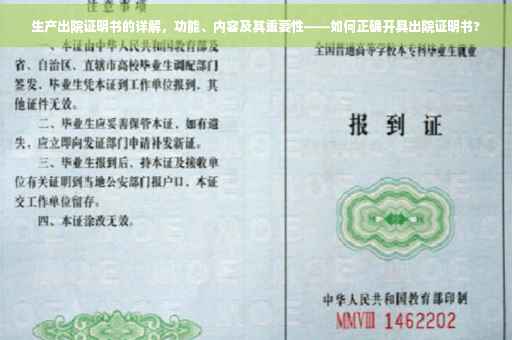 随着医疗行业的不断发展,人们对医疗服务的需求也日益增长,在生产过程中,无论是自然分娩还是手术助产,产妇都需要经过一系列的医疗过程,在这个过程中,生产出院证明书作为产妇出院的重要文件,具有不可忽视的作用,本文将详细介绍生产出院证明书的功能、内容以及重要性。
