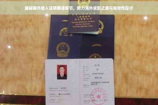 摘要:本文将探讨国外收入证明的翻译细节,揭示其对于海外求职的重要性。通过深入了解翻译过程中的关键要点,为求职者提供有效指导,助力其顺利获得海外就业机会。本文将探讨翻译国外收入证明是否有效及其在求职过程中的作用。