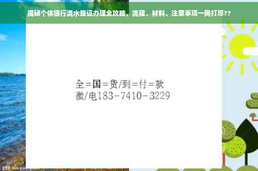 随着全球化的发展,越来越多的人选择出国旅游、留学或进行商务活动,对于个体户来说,证明自己的经济实力和资金来源是办理签证的一大挑战,个体银行流水签证作为一种有效的证明方式,逐渐被广大个体经营者所接受,本文将详细介绍个体银行流水签证的办理流程、所需材料以及注意事项,帮助读者更好地了解和顺利办理。