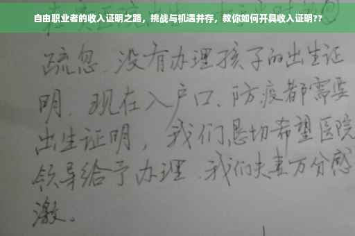 自由职业者在面对收入证明的挑战时,应保持乐观和积极的态度,寻求多种解决方案,努力提高自己的专业技能和综合素质,在这个过程中,他们将获得更多的成长机会和收入来源。