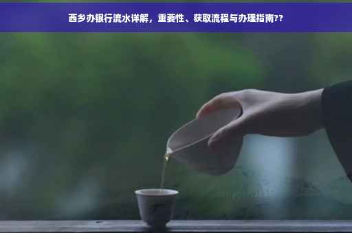 随着数字化时代的到来,银行业务日益便捷化,越来越多的人开始关注自己的银行流水,作为其中的一员,西乡办银行的服务质量和效率备受大众瞩目,本文将全面剖析西乡办银行流水的重要性、获取流程、内容解读、注意事项及应用场景,助您更好地掌握个人财务状况。
