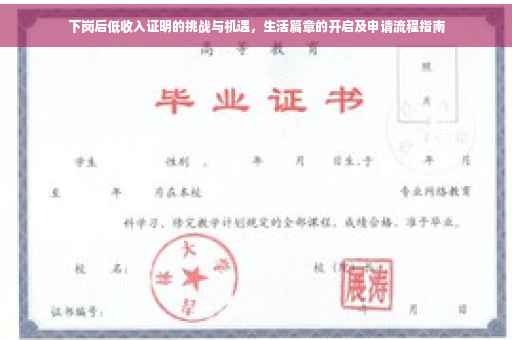 摘要:下岗后低收入证明是面临生活挑战的重要篇章,挑战与机遇并存。为了获取此证明,需要前往相关机构如社保局或街道办事处进行申请,并提交个人身份证明、收入证明等材料。这一过程反映了现实生活中的困境与应对策略,也揭示了个人在逆境中寻求机遇的决心和勇气。这也提醒我们关注社会底层群体的生活状况,共同构建和谐社会。