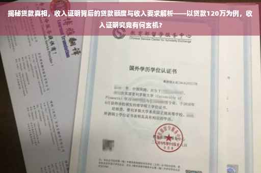 摘要:本文将揭示贷款120万背后的收入证明要求与真相,重点关注贷100万的收入证明细节。通过深入了解银行对贷款人的收入要求、收入证明的具体内容以及可能存在的误区,帮助读者更好地准备贷款申请,避免不必要的困扰。本文还将探讨贷款过程中的一些关键要点,为读者提供有益的指导。