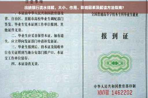 摘要:本文将详细介绍出纳银行流水大小的概念、作用及影响因素,并提供解读方法。通过本文,您将了解如何解读银行流水大小,包括其含义、如何分析以及需要注意的要点。阅读本文,帮助您更好地理解出纳银行流水的重要性,并有效运用银行流水数据进行财务管理。