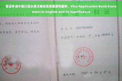 随着全球化的进程不断加速,越来越多的人选择走出国门,探索世界各地的文化与风景,在签证申请过程中,银行流水作为财务证明的重要一环,其英文表述及其准确性尤为重要,本文将详细介绍签证申请中银行流水的英文表达,以及其在实际申请过程中的重要性。