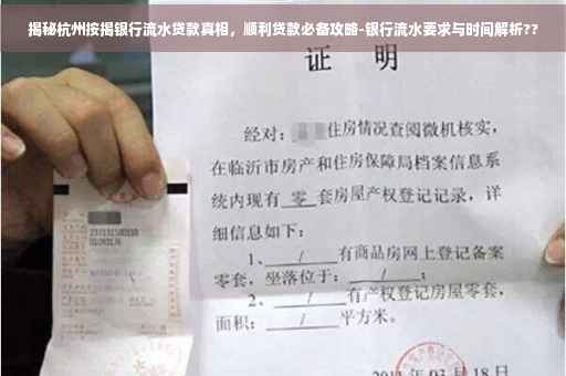 摘要:本文将介绍杭州按揭银行流水的重要性,并揭示贷款真相,帮助读者更好地了解贷款流程。文章将解答杭州按揭银行流水需要的时间长度,以及其他相关注意事项。通过本文的指导,读者可以更加顺利地申请贷款。