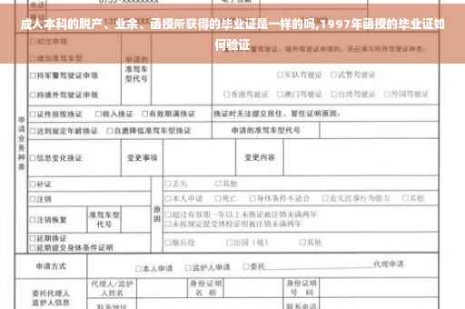 学校的毕业证可以通过普通成人高等学历证书的官网或线下教育局辅助认证。1997年的函校毕业证验证,要提供以下的材料,学历证书,身份证,个人档案中的毕业申登记表复印件