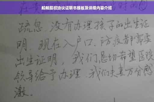 撰写一份完整、规范的船舶股权协议证明书对于保障船舶所有者、投资者及相关方的权益至关重要,希望本文的介绍和分析能够帮助您更好地了解船舶股权协议证明书的相关知识,为您的实际操作提供指导,在实际应用中,请务必遵守相关法律法规,并聘请专业律师进行法律审查,以确保协议的合法性和有效性。
