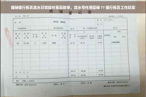 随着金融行业的快速发展,银行柜员这一职业逐渐受到广泛关注,作为银行前台服务的重要组成部分,银行柜员每天都需要面对大量的客户与交易流水,本文将带您深入了解银行柜员流水背后的故事,揭开这一职业的神秘面纱。