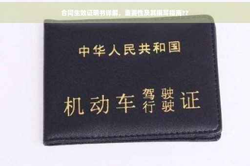 在当今社会,随着法治建设的不断完善,合同已成为我们生活中不可或缺的一部分,无论是个人还是企业,在各类经济活动中都需要签订合同来明确双方的权利和义务,而合同生效证明书则是证明合同具备法律效力,开始生效执行的重要文件,本文将详细介绍合同生效证明书的相关知识,以及其在实际应用中的重要性。
