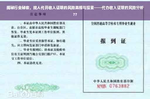在现代社会,各种生活和工作场景都需要提供收入证明,有时人们因种种原因无法提供真实的收入证明,于是选择找人代开,本文将深入探讨找人代开收入证明的背后真相,揭示其中的风险,并为你提供明智的选择建议。