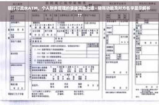 摘要:银行推出ATM流水服务,为个人财务管理提供便捷高效的解决方案。通过ATM机转账,不仅操作简便,还能实现快速到账。关于转账时是否能打出对方名字的问题,取决于银行的具体规定和ATM机的功能。银行打流水ATM服务极大便利了个人财务往来,满足了现代人的快节奏生活需求。